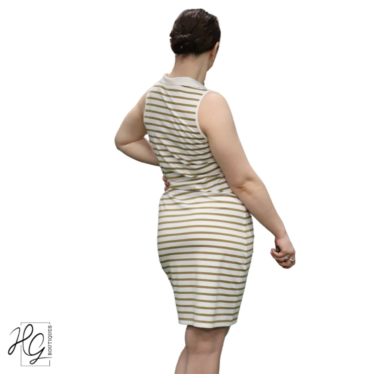 Saint James striped sleeveless dress with classic shirt lapels and a V-neck. Made of recycled fibers offering UV protection